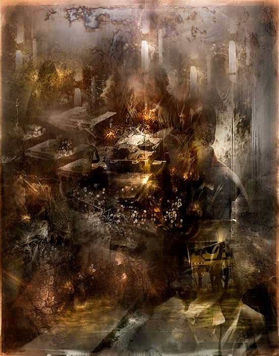 When the laws of nature intercede on her behalf, footprints are sent scurrying in every direction, and when the coordinates mimic the exact measurements needed to trigger the alchemical vessels that seduce the weather, that whir and hum like simian lanterns held up to warn of impending dangers and invisible locks, she enters the forest from behind, where the spirits speak only Spanish and the nights are without equal. It is necessary to harness these wonders. The minerals of distraction... Molecules of light. When she places her hand on the left side, only the brightness of a sudden recognition prevails. When her hair accidently flounders in your eyes, she is the invisible word of a transparent body. Realities pass through that word on the way to your mouth...